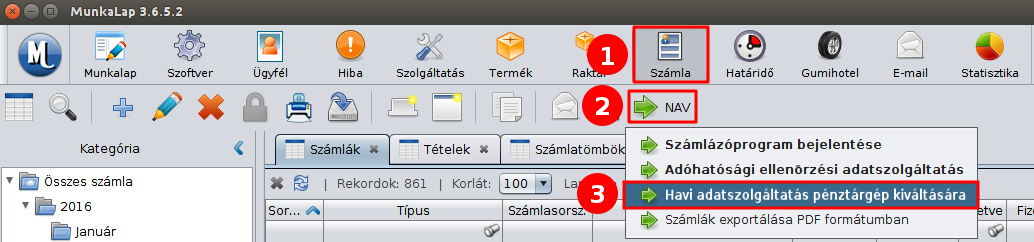 1. A számlák havi kimentése a MunkaLap programból