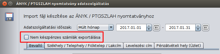 A törvény szerint csak a készpénzes számlákat kell beküldeni, ennek ellenére volt, aki kérte, hogy a nem készpénzes számlákat is ki lehessen menteni. Lehetőleg ne jelölje ki!