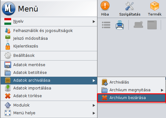 - Archívum bezárása