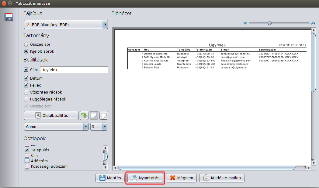 - Nyomtatási lehetőség PDF exportnál
