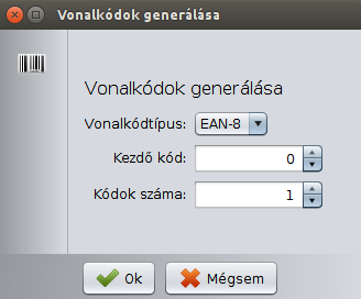 - A plusz gombra kattintva megjelenik a vonalkódgeneráló ablak.