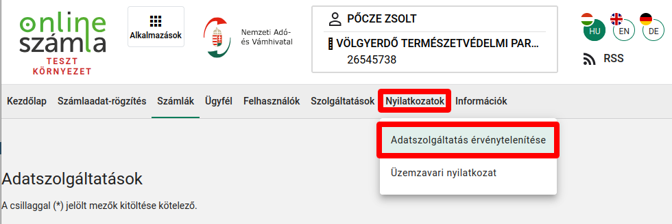 - Lépjen be a NAV Online Számla rendszerébe.
